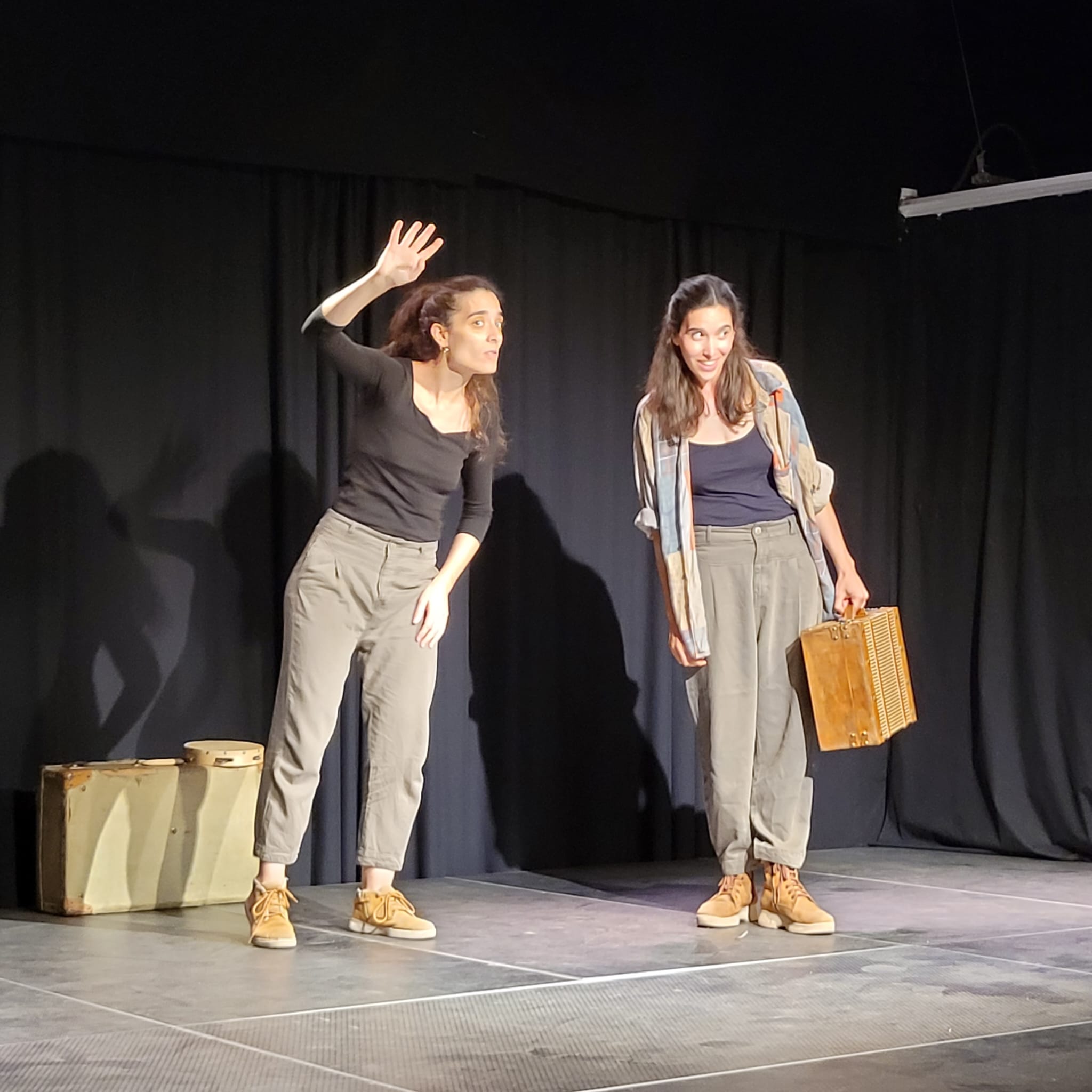 Dos personatges arriben a un indret. Porten dies i dies viatjant amb dues maletes buides però carregades d’històries. Arriben i veuen tot de cares i ulls que se les miren. És un lloc nou, desconegut, però mica en mica s’hi van trobant bé. És aquest el lloc adequat? Voldran sentir les seves històries? Potser sí. Potser ha arribat el moment.
